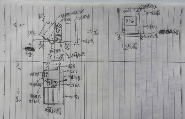 于是我萌生了发明自巡航垃圾清理机器人的想法,在老师指导下我设计制作了该项目。该项目利用优控430A控制器(PLC)经行整体控制,结合M415B步进电机驱动器控制24V20AH电池驱动两台57J09型电机提供行走动力,11.3V5200MAH电池为垃圾收集箱内600W、电压11.3的涵道风扇提供动力,利用负压吸收细小垃圾;摄像头配合机械臂抓取较大块垃圾。可在复杂路面上实现自动巡航、垃圾清理及初步分类的新型清洁机械,旨在提高城市清洁工作效率、降低人力成本。